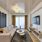 The spacious 78 m² Smarald Sea View Apartment In Infinity Beach Resort - Parking Mamaia is located in Mamaia, approximately a 10-minute ride from Club Crazybeach, and boasts a sauna. Within a 6-km distance of the beachfront apartment you will find Kudos Public Beach.